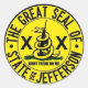 Mostre seu apoio ao movimento de secessão libertária que acontece na Califórnia Norte e no sul do Oregon com este adesivo legal com o selo do Excelente do Estado de Jefferson.