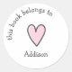 Adesivo Redondo Este Livro Pertence A - Coração Rosa Bonito - Cria