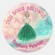 Este Livro Pertence A - Adesivo Glitter Gradiente de Pastel Rainbow Bokeh - Um adesivo brilhante de cor tenda com turquesa mista, brilho rosa e mauve com uma princesa vestindo um vestido brilhante verde. Você pode personalizar este adesivo adicionando seu nome ou suas iniciais.