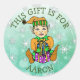 Adesivo Redondo Este presente é para, garoto Elf com presente