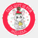 Um bonitinho gato de desenho animado com um dom, este presente é para... para... e do adesivo de Natal. Adicione o nome na área de personalização.