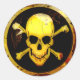 Adesivo Redondo Estilo de Grunação Dourado Caveira e Crossbones