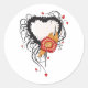Adesivo Redondo Estilo de Grunge Preto Coração e Flor
