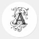 Adesivo Redondo Estilo Victoriano Elegante - Letra A Monograma