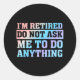 Adesivo Redondo Estou aposentado Não me peça para fazer nada