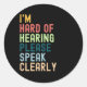 Adesivo Redondo Estou Duro de ouvir, por favor, fale claramente