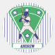 Design de estrela de beisebol azul e branca personalizada mostrando um batedor balançando um uniforme azul e branco de camisa de beisebol com um diamante verde de campo de beisebol com estrelas azul e branca no fundo. Isso pode ser totalmente personalizado com o nome de sua escolha. Disponível em outras cores em nossa loja e recebemos solicitações personalizadas para combinações de cores diferentes para as cores de sua equipe. Contacte-nos através da nossa loja com a sua solicitação antes da compra e teremos todo o prazer em criar a sua compra.
