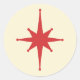 Adesivo Redondo Estrela Retro Moderna do século médio em Vermelho