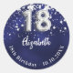 Um adesivo para uma 18ª festa de aniversário. Uma cor azul de fundo marinho com estrelas de falso prata. A cor azul é irregular. Adicione seu nome, texto.