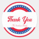 Adesivo Redondo Estrelas e Stripes Branco Vermelho e Azul Obrigado