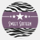 Trendy and moderno Stars Zebra Print Sweet Six Stickers apresentando um fundo de impressão em preto e branco e uma borda roxa ousada adornada com um divertido filme de estrela. Estes autocolantes são uma escolha de quadril e na moda para um doce 16. Fácil de personalizar, basta adicionar detalhes da parte nos campos de texto fornecidos. Clique em "Personalizar" para encontrar mais opções de personalização.