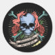 Crânio de rock and roll e imagens cruzadas com meninas diabólicas, rosas e faixas onduladas com "Eternally Grateful" em letras de guião, sobre fundo de explosão solar. Camisas, cartas, presentes.