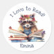 Adesivo Redondo Eu adoro ler com um bebê guaxinim