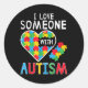 Adesivo Redondo Eu Amo Alguém Com Autismo Sensibilização Cardíaca