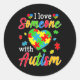 Adesivo Redondo Eu Amo Alguém Com Autismo Sensibilização Cardíaca