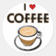O design "I Love Coffee" apresenta um latte com espuma e um tipo de deco em negrito para um soco extra. Faz um item divertido para todos os consensos de café em sua vida e para aqueles que amam essa bebida cafeinada.