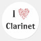 Adesivo Redondo Eu Amo Clarinete Coração Vermelho de Notas Musicai