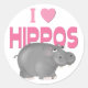 Cinza bonita hipopótamo com a palavra que amo hipopótamos escritos a rosa com um coração cor-de-rosa.