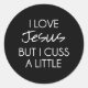 Adesivo Redondo Eu amo Jesus mas eu Cuss um pouco