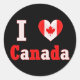 Adesivo Redondo Eu Amo o Canadá Maple Leaf Heart