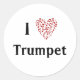 Adesivo Redondo Eu Amo Trompete Coração Vermelho de Notas Musicais