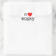 Eu adoro vodka, com um grande coração vermelho, em russo (cirílico)