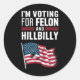Adesivo Redondo Eu estou votando no Felon e no Hillbilly 2024 Pro