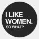 ADESIVO REDONDO EU GOSTO DE MULHERES, ENTÃO O QUE