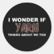 Adesivo Redondo Eu Me Pergunto Se Yarn Pensa Em Mim Também Cozinha