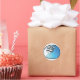 Eu menti a gibi de gibi. Azul preto e branco. Boca aberta, bigode, rindo, dentes brancos.