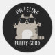 Adesivo Redondo Eu sou Feline Purr-ty Boa Gata Engraçada Negra BG