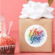 Uma vibrante pintura aquosa captura a essência do amor e afeto. A frase "Eu te amo" é escrita elegantemente em um guião artístico fluente, cercado por uma delicada espiral de matizes macios. A composição evoca um sentimento de calor, ternura e emoção sincera.