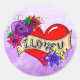 Adesivo Redondo Eu Te Amo | Tatuagem Cardíaca
