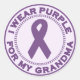 As fitas roxas são usadas para promover a conscientização do lúpus, sarcoidose e fibromialgia. Blocos de conscientização roxos também promovem a educação e a lembrança pela violência contra as mulheres. As fitas roxas também são usadas para promover a conscientização sobre a violência doméstica, a conscientização sobre o derrame de crianças, a conscientização sobre a fibrose quística, a consciência sobre a doença de Alzheimer e a conscientização sobre o câncer de pâncreas. As fitas roxas simbolizam o Dia Memorial do Trabalhador. Este design de conscientização único apresenta uma grande fita roxa cercada por um monte de pequenas fitas roxas. O texto em volta desta design circular diz que eu Visto Roxo Para Minha Avó. Este design único é um excelente de mostrar suporte a conscientização.
