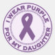 As fitas roxas são usadas para promover a conscientização do lúpus, sarcoidose e fibromialgia. Blocos de conscientização roxos também promovem a educação e a lembrança pela violência contra as mulheres. As fitas roxas também são usadas para promover a conscientização sobre a violência doméstica, a conscientização sobre o derrame de crianças, a conscientização sobre a fibrose quística, a consciência sobre a doença de Alzheimer e a conscientização sobre o câncer de pâncreas. As fitas roxas simbolizam o Dia Memorial do Trabalhador. Este design de conscientização único apresenta uma grande fita roxa cercada por um monte de pequenas fitas roxas. O texto ao redor desta design circular lê-se Eu Visto Roxo Para Minha Filha. Este design único é um excelente de mostrar suporte a conscientização.