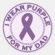 As fitas roxas são usadas para promover a conscientização do lúpus, sarcoidose e fibromialgia. Blocos de conscientização roxos também promovem a educação e a lembrança pela violência contra as mulheres. As fitas roxas também são usadas para promover a conscientização sobre a violência doméstica, a conscientização sobre o derrame de crianças, a conscientização sobre a fibrose quística, a consciência sobre a doença de Alzheimer e a conscientização sobre o câncer de pâncreas. As fitas roxas simbolizam o Dia Memorial do Trabalhador. Este design de conscientização único apresenta uma grande fita roxa cercada por um monte de pequenas fitas roxas. O texto em volta desta design circular diz que eu Visto Roxo Para O Meu Pai. Este design único é um excelente de mostrar suporte a conscientização.