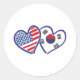 Adesivo Redondo EUA Coreia do Sul adoram corações