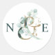 Personalize este elegante e moderno adesivo de casamento com seus monogramas unidos por um amante de ouro e água verde eucalipto. Itens correspondentes também estão disponíveis.