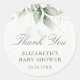 Belo Obrigado... com adesivos de aquarela eucalipto e folhas de ouro para chás de fraldas.