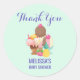 Um obrigado de evento personalizado que você cola ilustrou com uma tigela de sorvete com 3 scoops deliciosos cobertos de sprinkles doces. Um cone de sorvete também com 3 colheres de chocolate, baunilha e morango. Uma tigela de sobremesa cheia de sorvete com sabor neopolita com uma cereja deliciosa no topo.