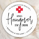 Evite um kit de Alivio de Bebado de suspensão! Esses benvindas de casamento divertidos são perfeitos para fazer seus próprios kits de recuperação de ressaca para seus hóspedes, essenciais se você planeja ter um bar aberto. Visite nossa coleção para favores de casamento, e favores de kit de ressaca e guardas de casamento. Personalizar com nome e data. COPYRIGHT © 2020 Judy Burrows, Black Dog Art - Todos Os Direitos Reservados. Evite o Bebado de suspensão para Alivio Kit de casamento Favor Adesivo redondo clássico