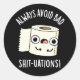 Adesivo Redondo Evite sempre manchas ruins, papel higiênico engraç