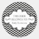 Etiquetas de etiqueta pretas e brancas, modernas e elegantes.- Padrões de chevrons brancos e pretos, com fundo listrado. No centro há um elegante emblema com bordas e curlices de carvão. Lê 'Este Livro Pertence a' em letras elegantes. Nome personalizado por baixo. Clique na opção Personalizar para alterar as cores do texto, o tamanho e os estilos de fonte. Até mesmo altere as listras brancas alterando a cor de fundo.