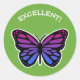 Este adesivo retrata uma borboleta rosa e azul bonito com a legenda "EXCELENTE!" em texto branco sobre fundo verde - ou você pode editá-la para sua mensagem preferida. Uma forma apelativa de um professor ou pai demonstrar apreço pelo trabalho de excelente ou esforço extra, por exemplo
