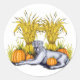 Outono e trabalho de arte de Halloween de Danes-R-Us apresentando um Grande Dane com um pano de fundo de milho e abóboras na frente.
