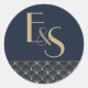 Este belo adesivo inicial de casamento foi projetado para coordenar com a Coleção de Casamentos Gatsby do Excelente. A coleção apresenta o padrão clássico do ventilador do deco de arte e os gloriosos quadros geométricos do ouro. Esta coleção única apresenta romance sofisticado, estilo e elegância. © Julie McIver