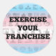 Você está limitado no seu discurso político no seu local de trabalho? Use estes adesivos para exortar todos a saírem e votarem! Este adesivo é bom para todos os tipos e ciclos eleitorais. Saia da votação!