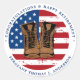 Adicione o toque final ao seu partido militar de aposentadoria com estes adesivos militares design da bandeira americana americana e suprimentos do partido. Bandeira americana em branco e azul-vermelho moderno, estrelas e listras, com design de combate de couro. Este adesivo do partido Bandeira Americano é perfeito para uma festa de aposentadoria militar, destacamentos militares são enviados, celebração militar de boas-vindas a casa, graduação militar, e soldados indo embora da festa. Perfeito para todos os militares, militares, proteção de fronteiras, patrulha de fronteira, oficial de conservação, guarda florestal, diretor de jogos, polícia federal. Personalize esta bandeira patriótica americana com o nome dos soldados e parabéns, bem-vindos a casa, boa sorte ou feliz aposentadoria. Veja a nossa coleção para competir com convites para aposentadoria militar, ofertas de graduação militar, favoritos para festas e suprimentos. COPYRIGHT © 2021 Judy Burrows, Black Dog Art - Todos Os Direitos Reservados. Clássico do Exército Militar - Marca Americana Boots Retirement Party Classker Round Sticker