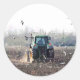 Preparando para a próxima safra. O trator arado (arado) o campo e as aves selvagens procuram comida no solo recém-virado. Watercolor Inglaterra.
