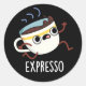 Adesivo Redondo Expresso Engraçado Executando Café Pun Dark BG